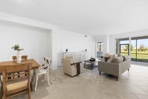 Additional highlights include a two-car garage with extra storage space, low-maintenance coach home living, and access to the incredible amenities of Calusa Country Club.