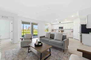 This single-story residence features a modern open-concept layout, seamlessly connecting the dining area, kitchen, and spacious living room—ideal for both entertaining and everyday comfort. Large sliding glass doors lead to a covered lanai, creating the perfect indoor-outdoor setting to relax and enjoy the Florida lifestyle.