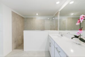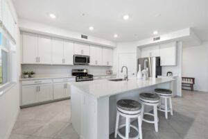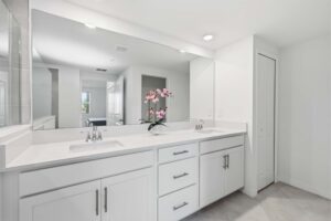 The owner’s suite is privately positioned at the rear of the home, offering a peaceful retreat complete with a spa-like bathroom and a generous walk-in closet. Two additional bedrooms are located near the front of the home, providing flexibility for guests, family, or a home office.